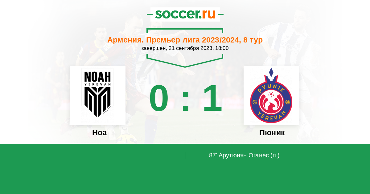 Запасные: Карабальо Хосе (с 40'), Хендрикс Сэм (с 69'), Григорян Артак (с 89'), Браво Хуан (с 89'), Жуниньо (с 89'), Оганесян Арман, Авакян Анри, Варданян Левон, Баранов Никита, Раванелли, Режис, Гонсалвеш Вагнер