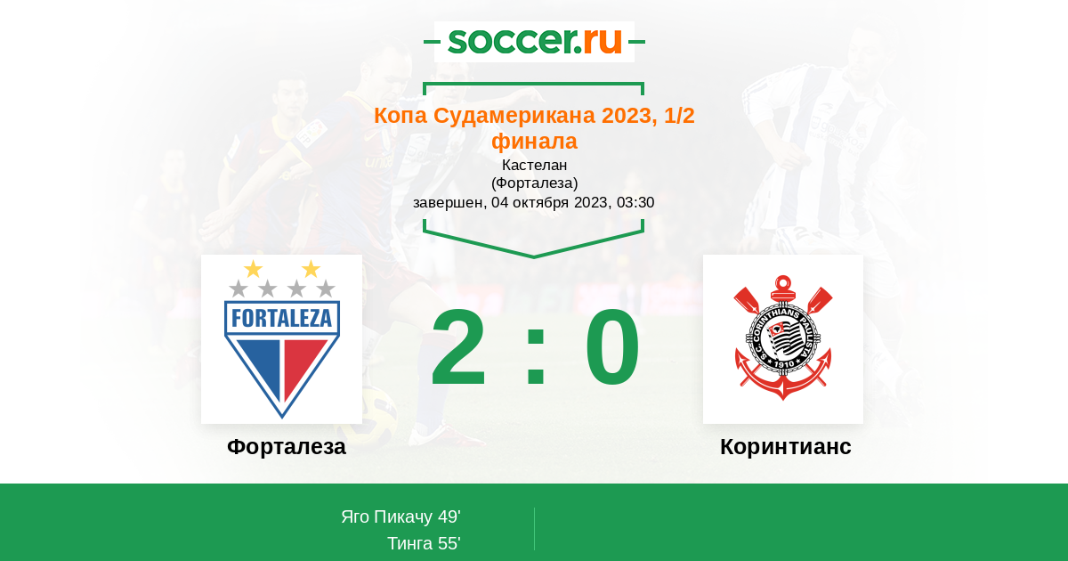 Запасные: 21 Педро Аугусто (с 70'), 39 Мачука Иманол (с 70'), 88 Лукас Саша (с 82'), 91 Гальярдо Тиаго (с 90'), 10 Криспим Лукас (с 90'), 5 Консейсао Марсело, 18 Ромеро Сильвио, 27 Калебе, 3 Фигейреду Тобьяш, 20 Дуду, 16 Фернандо Кауфманн, 45 Эскобар Гонсало