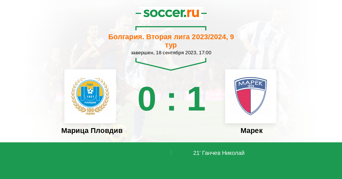 21' (0:1) Ганчев Николай