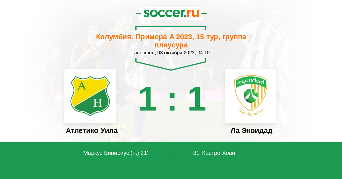 81' (1:1) Кастро Хоан (20) (J. Rojas Echavarria)