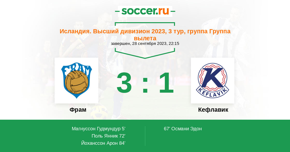 Запасные: 11 Любичич Стефан (с 46'), 19 Османи Эдон (с 59'), 7 Хафпорссон Виктор (с 78'), 8 Саэварссон Габриэль Арон (с 90+1'), 24 Магнуссон Асгейр Орри, 28 Хаконарсон Арон, 89 Гегедош Роберт
