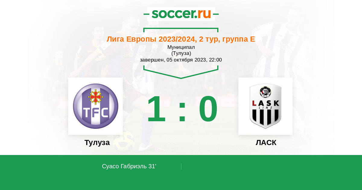 31' (1:0) Суасо Габриэль (17) (Даллинга Тис (9))
