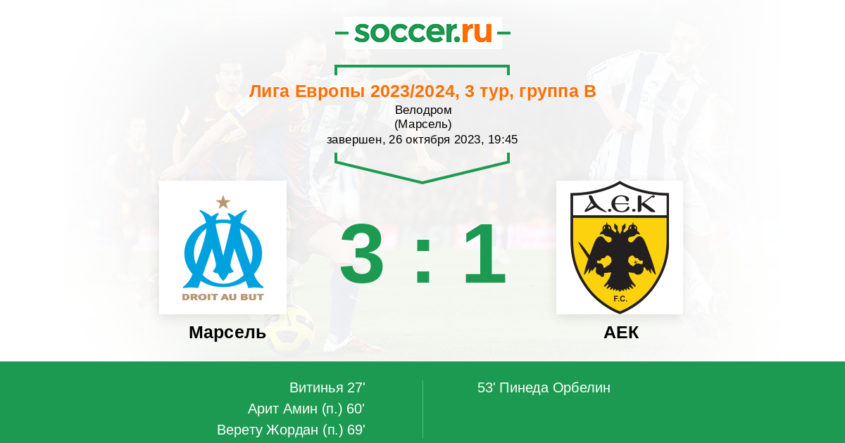 69' (3:1) Верету Жордан (27)