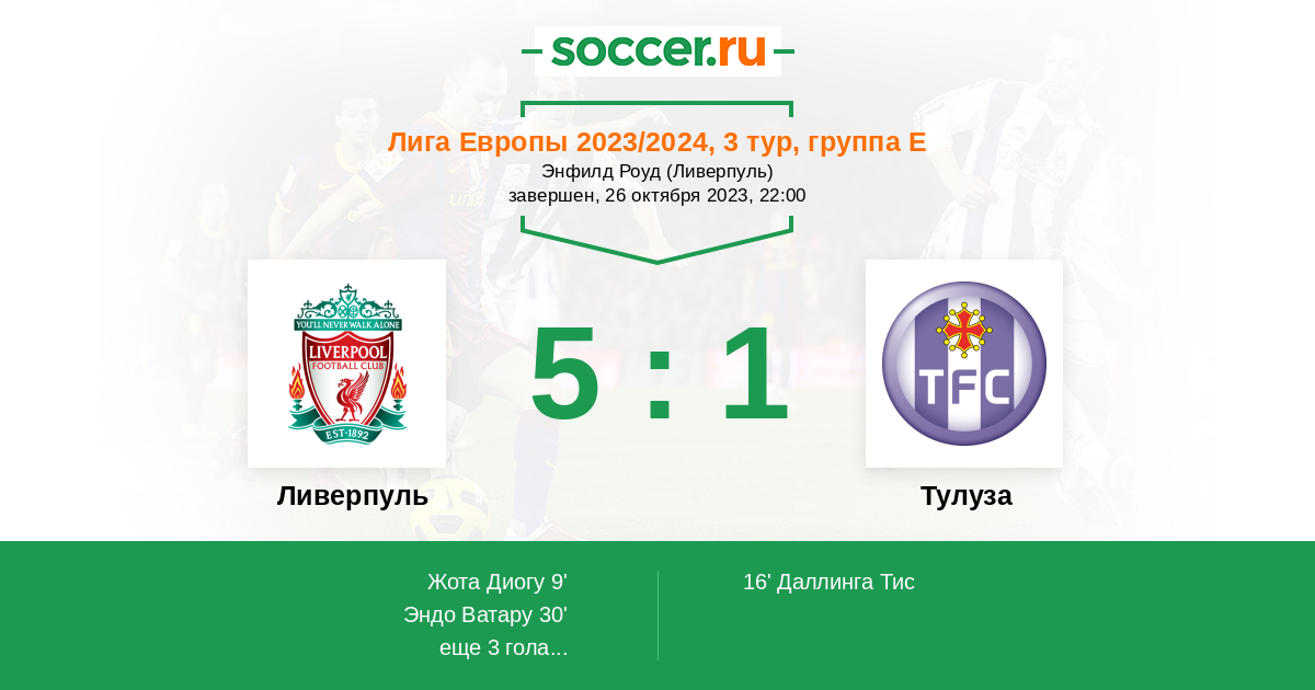 "Ливерпулю" тесно в Лиге Европы. Этот турнир маловат для амбиций и текущей силы команды Юргена Клоппа, которая усилилась настолько качественно, что даже полурезервный состав добывает уверенные победы на классе на международной арене. Качественно подготовиться к матчу с "Тулузой" игрокам "Ливерпуля" помогут целых пять с половиной дней, прошедших после успеха в дерби с "Эвертоном", а также фактор своего стадиона, на котором "красные" одержали шесть подряд побед с разницей не менее чем в два мяча. Главная проблема "Тулузы" — низкая, хоть и стабильная результативность порядка одного гола за игру. Увы, на "Энфилде" это будет означать всего лишь гол престижа.
