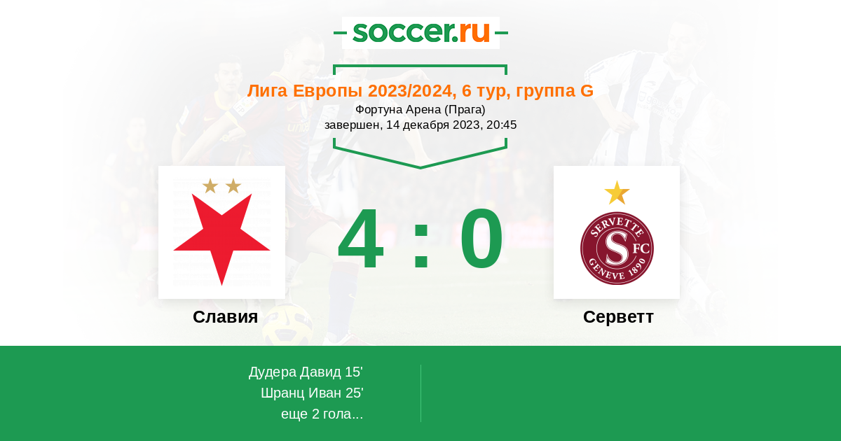 Обе команды уже решили свои задачи, Славия идёт дальше , а Сервет переходит в ЛК так что оба клуба будут играть в своё удовольствие, а значит голы будут с обоих сторон !