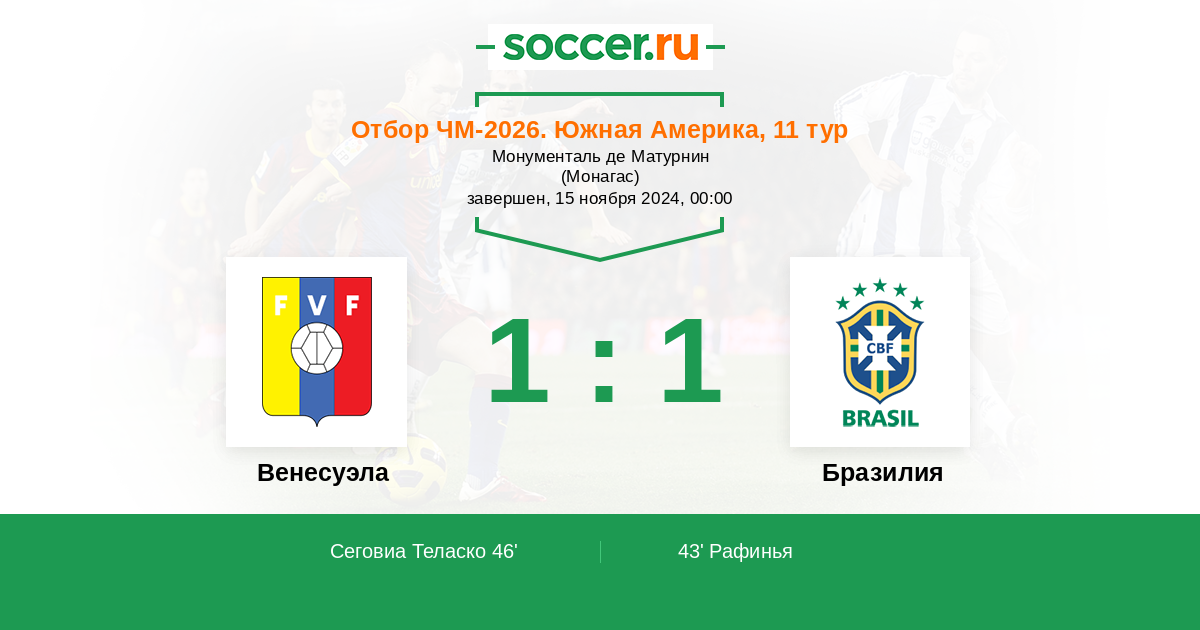 У Бразилии ситуация аналогичная: дома они набирают очки неплохо, а в гостях, например, обыграли Чили, но это была незаслуженная победа. По сути, они не должны были побеждать и забивать два гола. Более того, в гостевом матче против Парагвая Бразилия потерпела поражение со счётом 0:1. Это также актуально для сегодняшнего матча, так как бразильцы играют ужасно в гостях, и я думаю, что у них возникнут серьёзные проблемы с тем, чтобы вскрыть оборону Венесуэлы.