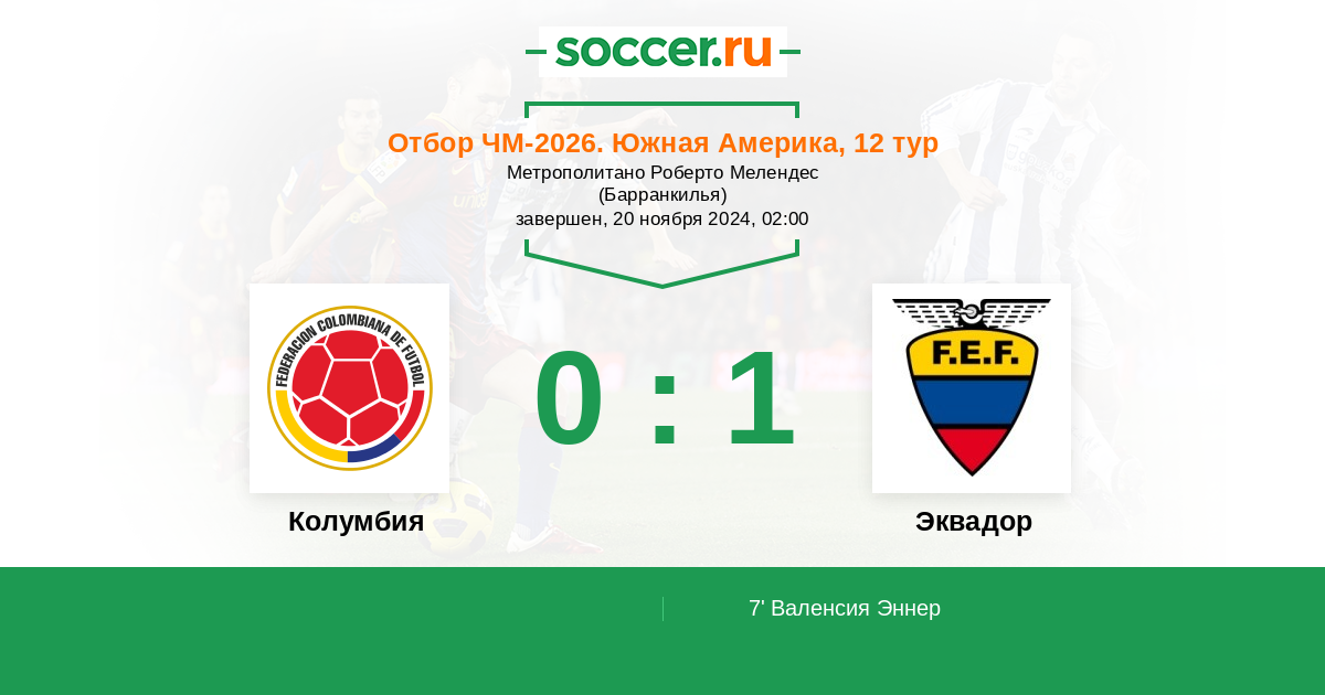 7' (0:1) Валенсия Эннер (13) (Франко Алан (21))