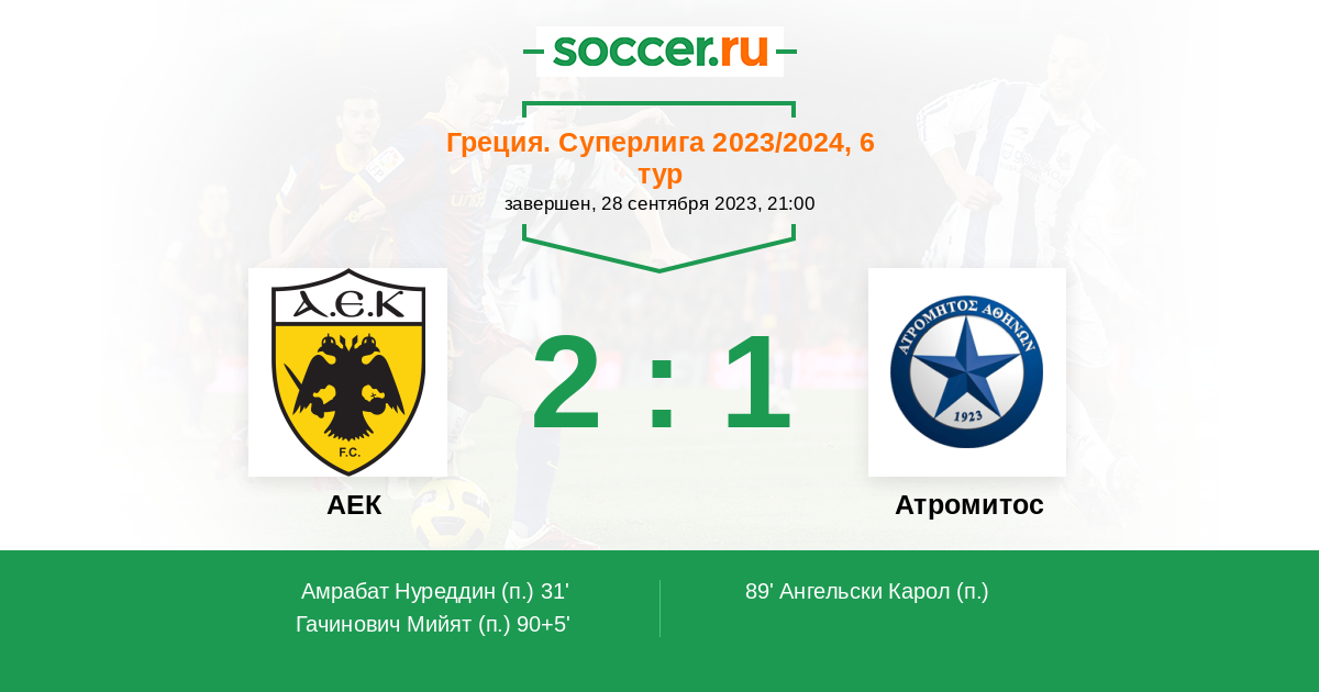 Запасные: 90 Зини (с 60'), 8 Гачинович Мийят (с 60'), 10 Цубер Стивен (с 60'), 19 Элиассон Никлас (с 60'), 25 Галанопулос Константинос (с 83'), 4 Шиманьски Дамиан, 2 Мукуди Гарольд, 30 Атанасиадис Гиоргос, 12 Рота Лазарос