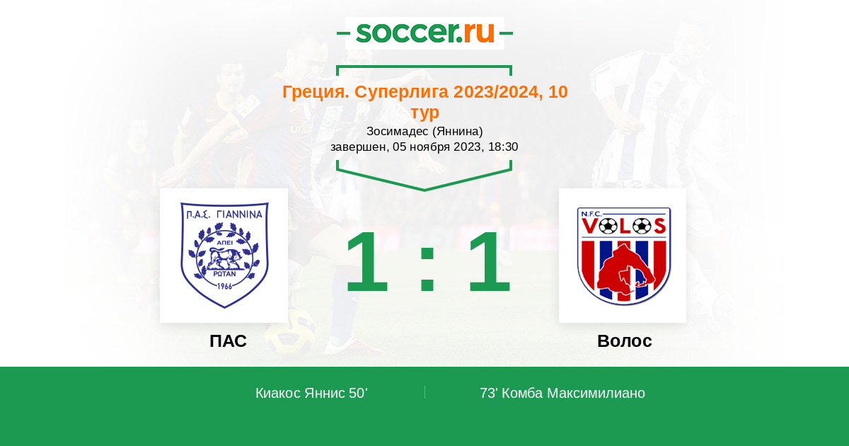 50' (1:0) Киакос Яннис (30) (Сория Карлес (2))