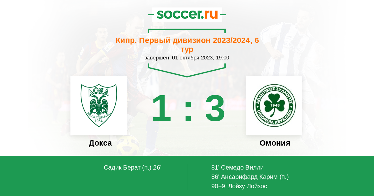 26' (1:0) Садик Берат (9)