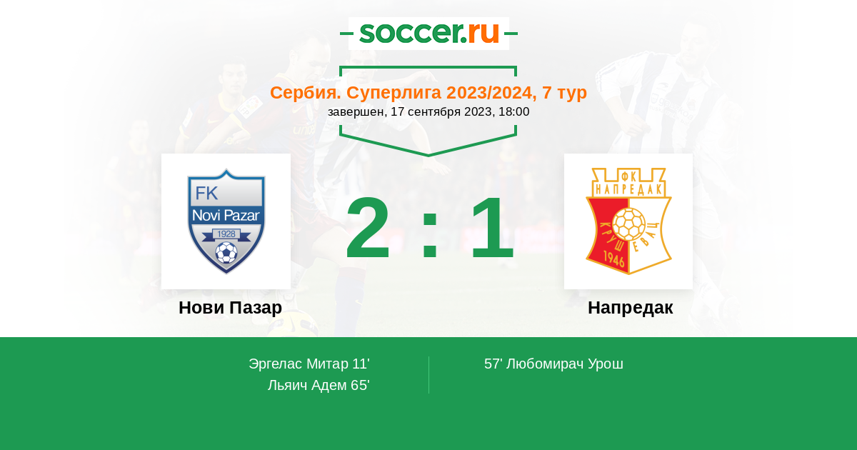 57' (1:1) Любомирач Урош (27) (Мршич Огнен (15))