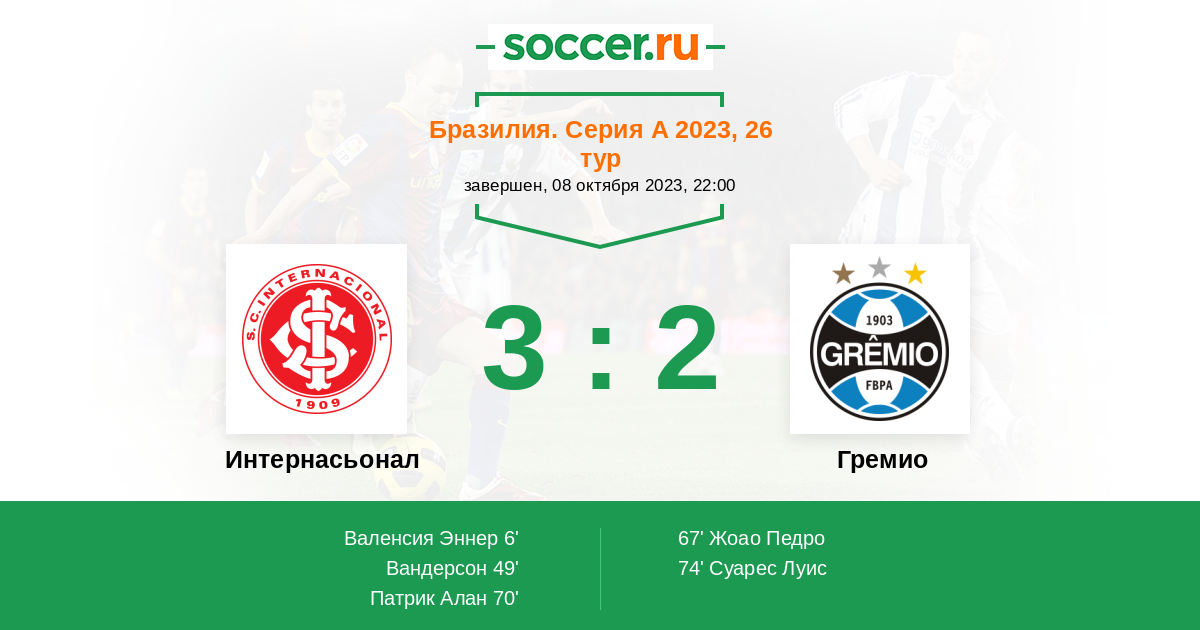 Запасные: 14 Натан (с 46'), 13 Эвертон (с 46'), 22 Бесоззи Лукас (с 54'), 21 Итурбе Хуан (с 86'), 77 Андре (с 86'), 7 Луан, 15 Увини Бруно, 53 Мартинс Густаво, 31 Кайке Луис, 35 Рональд, 2 Фабио, 34 Бруно Алвеш