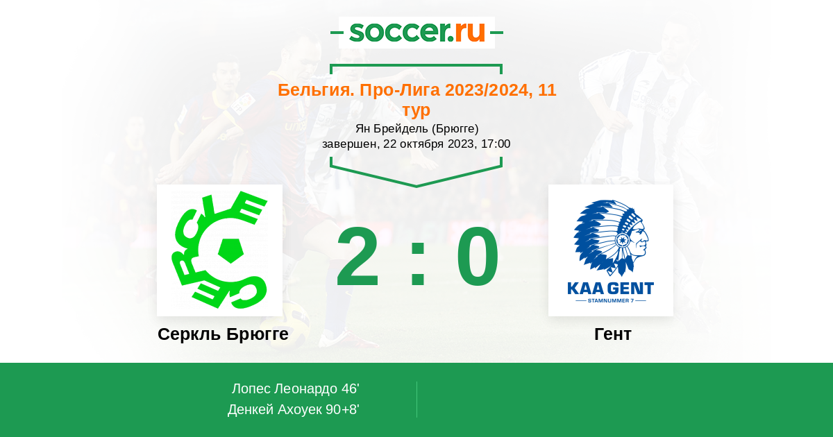 46' (1:0) Лопес Леонардо (22) (Сомерс Тибо (34))