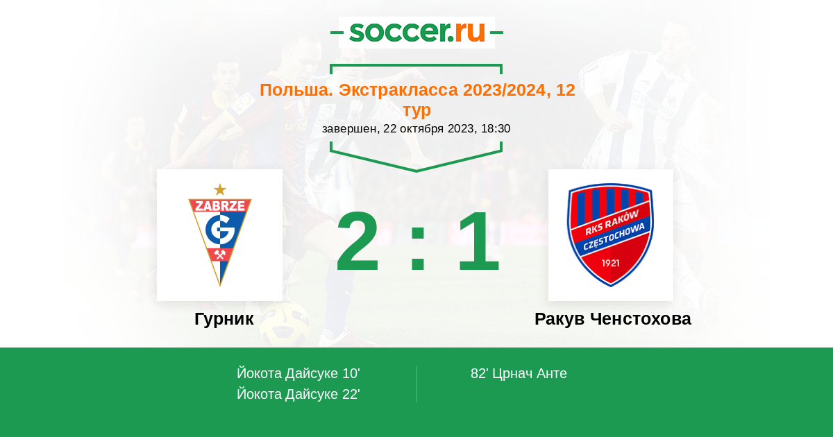 22' (2:0) Йокота Дайсуке (18) (Янза Эрик (64))