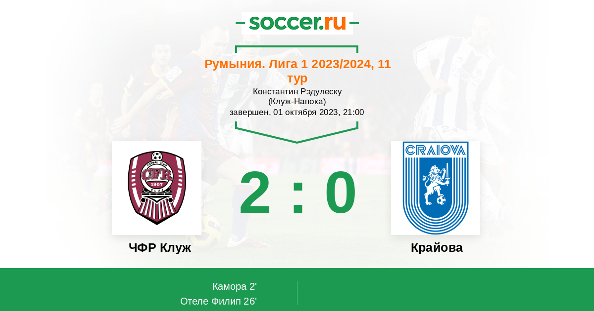 26' (2:0) Отеле Филип (17) (Бирлигея Даниэль (30))