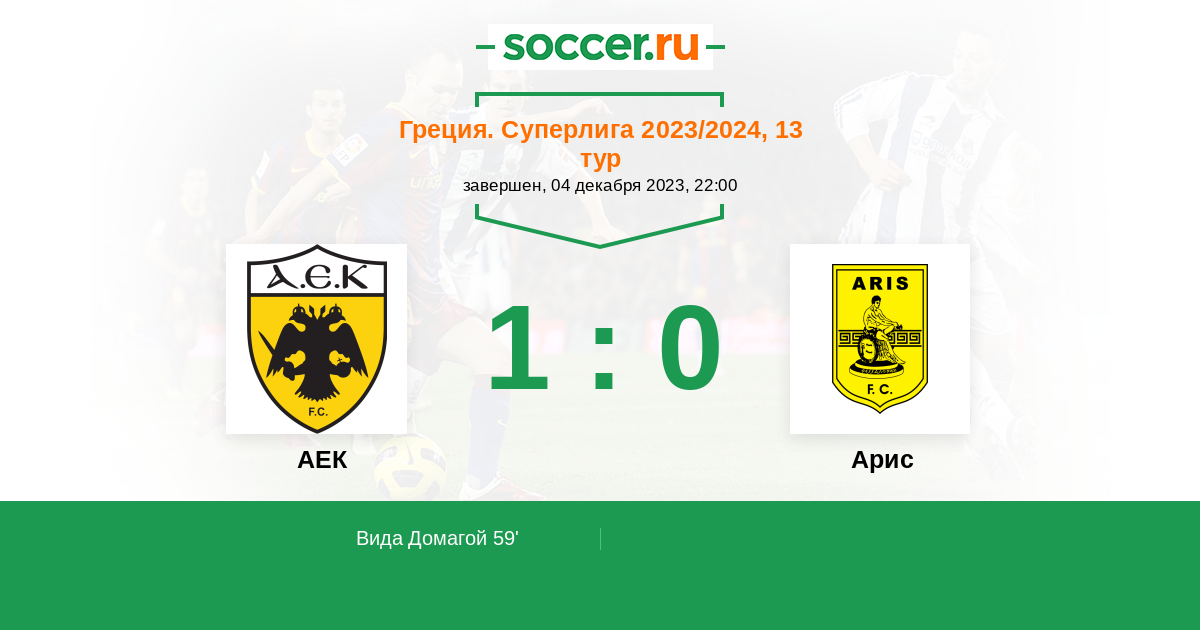 59' (1:0) Вида Домагой (21) (Манталос Петрос (20))
