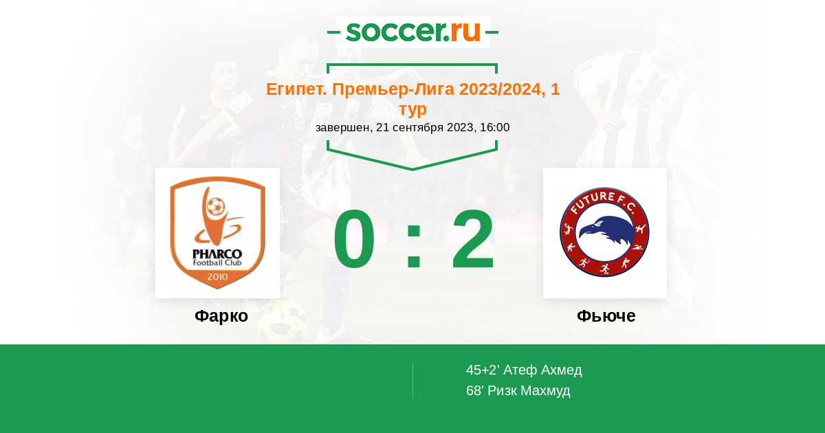 45+2' (0:1) Атеф Ахмед (30) (Али Бассем (2))