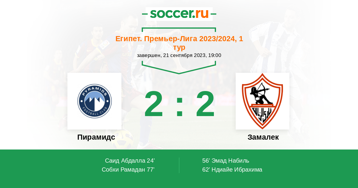77' (2:2) Собхи Рамадан (10) (Эль Карти Валид (18))