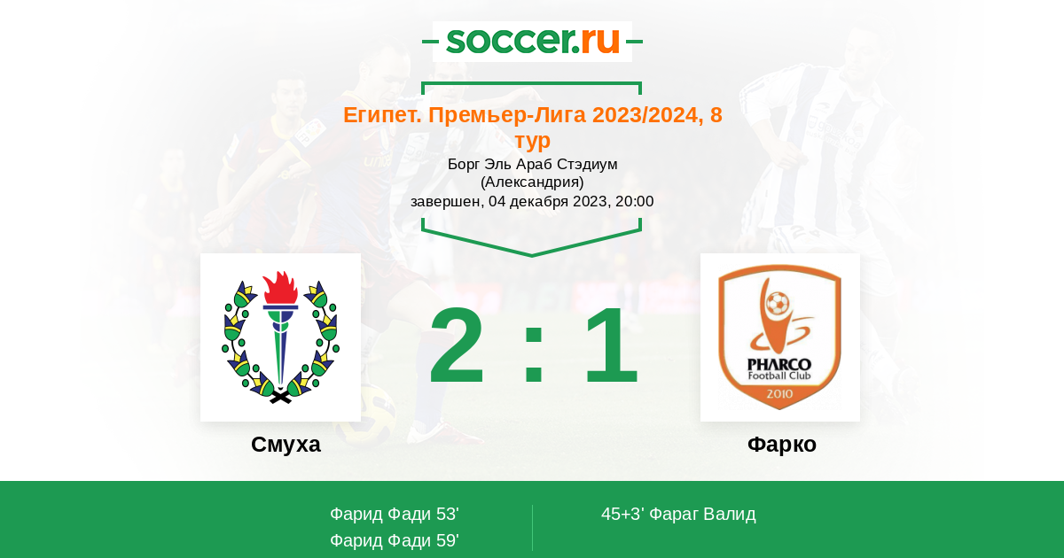 59' (2:1) Фарид Фади (9) (Габер Ислам (15))