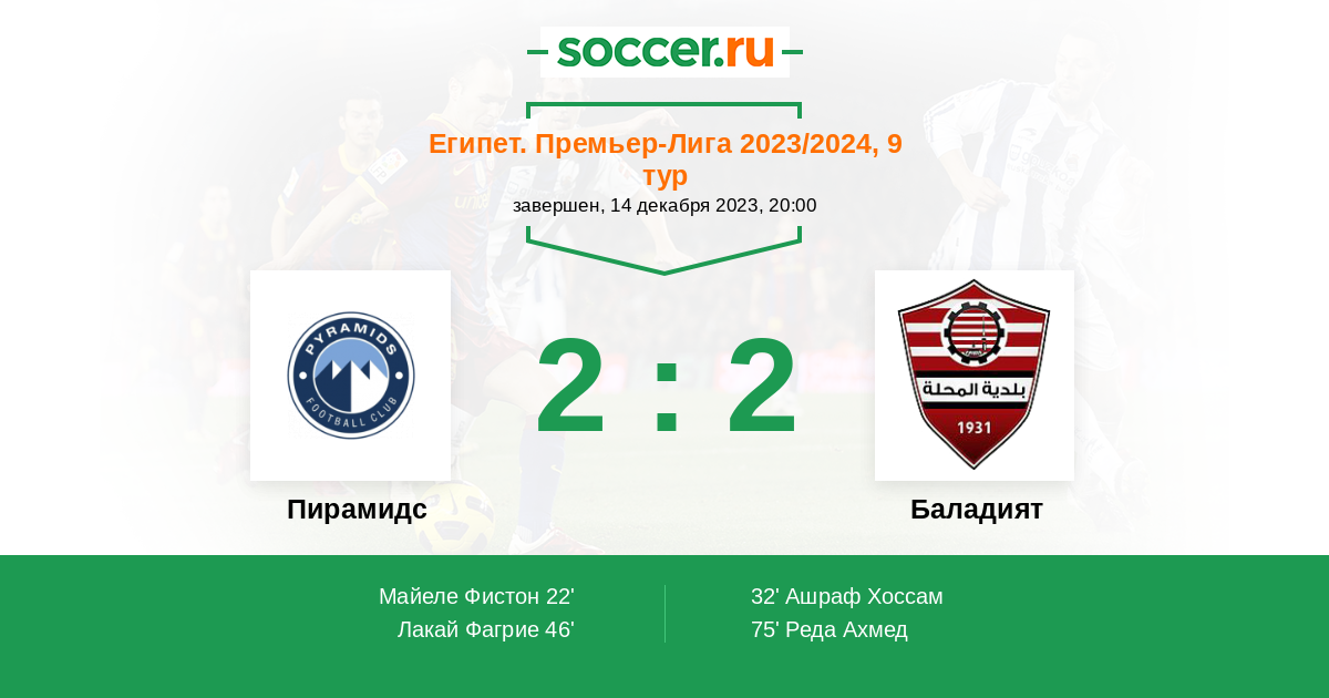 75' (2:2) Реда Ахмед (33) (Ашраф Хоссам (9))