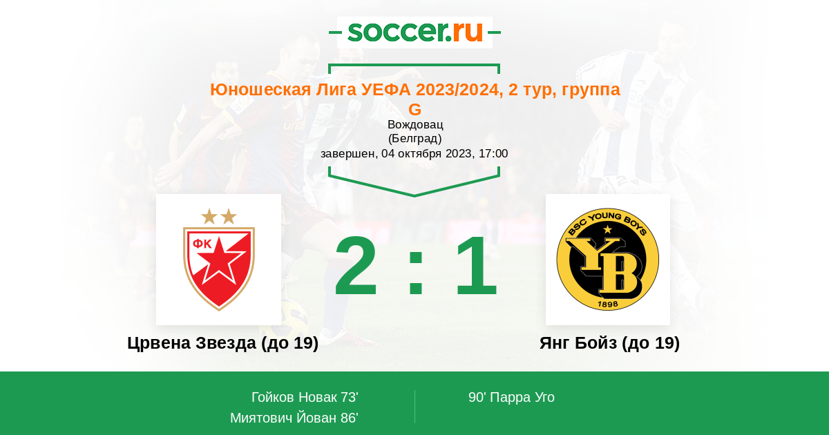 Црвена Звезда (до 19) - Янг Бойз (до 19)