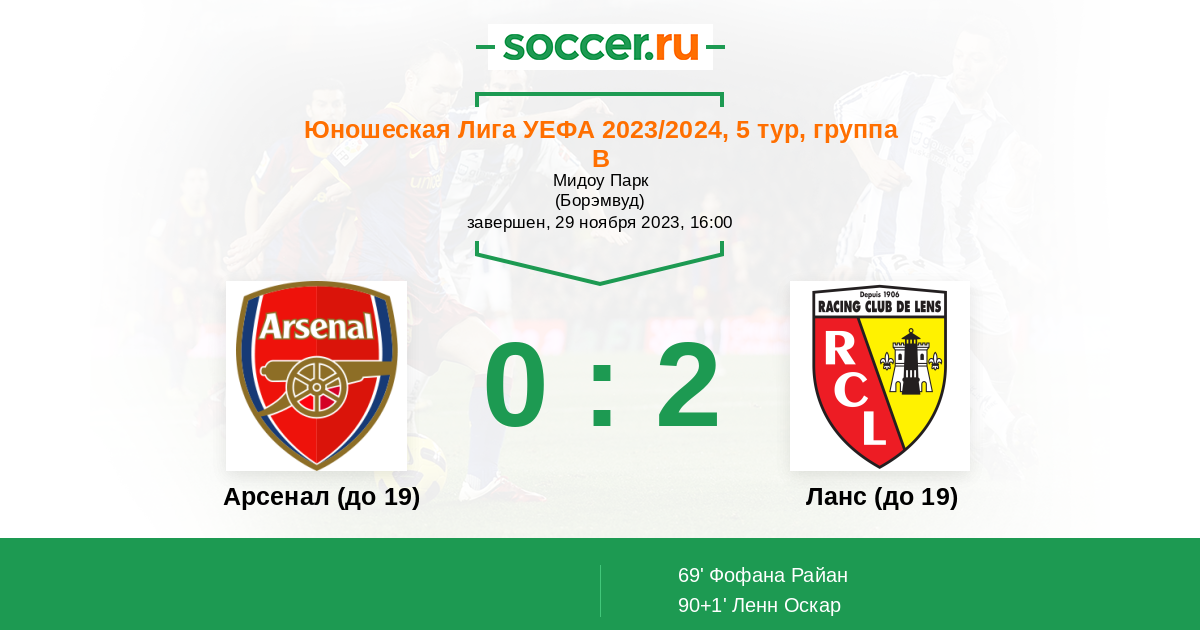 Арсенал (до 19) - Ланс (до 19)