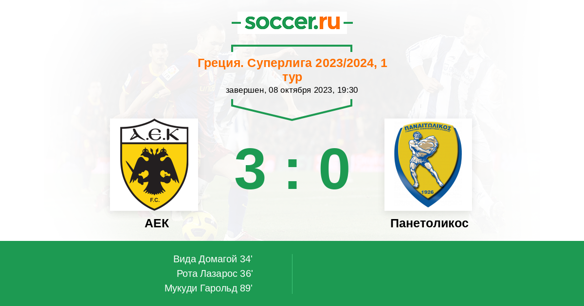 Запасные: 54 Лиавас Георгиос (с 46'), 14 Дуарте Фредерику (с 57'), 80 Бальдассарра Франко (с 73'), 49 Стайич Никола (с 73'), 19 Войлис Александрос (с 82'), 10 Хуанпи, 13 Гратерол Хоэль, 8 Белевонис Христос, 77 Николау Вангелис
