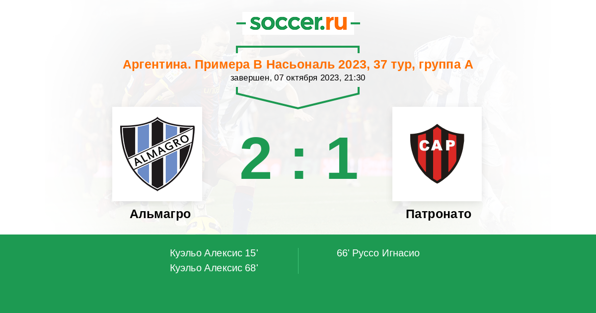66' (1:1) Руссо Игнасио