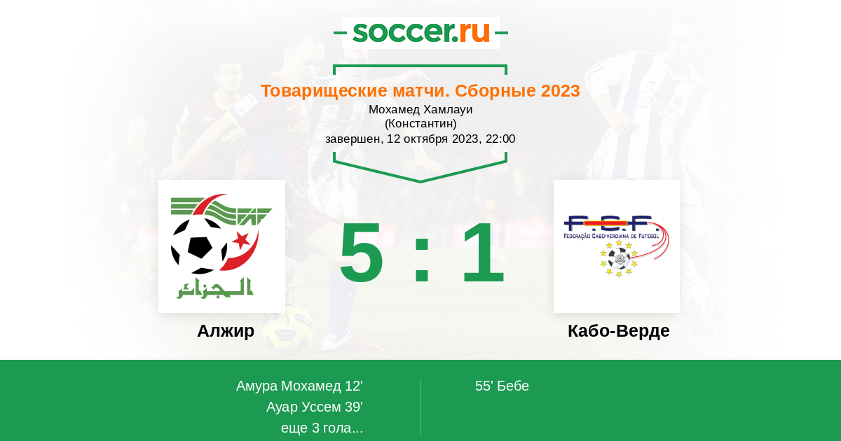 12' (1:0) Амура Мохамед (18) (Марез Рияд (7))