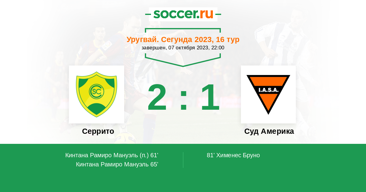 65' (2:0) Кинтана Рамиро Мануэль
