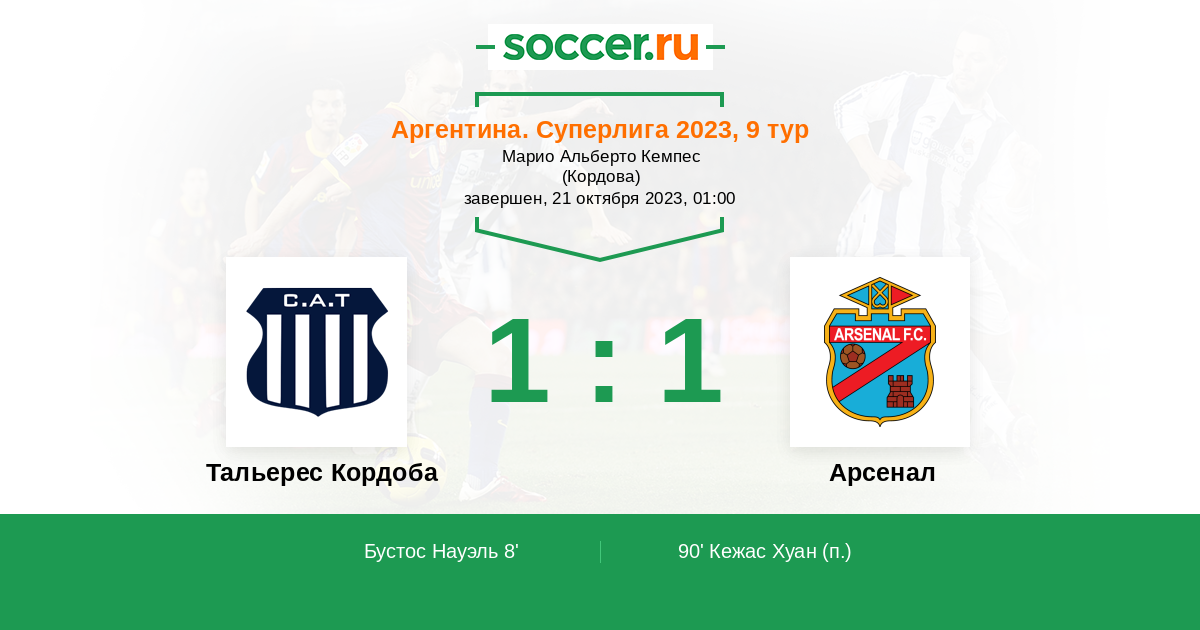 8' (1:0) Бустос Науэль (10) (Бенавидес Гастон (29))