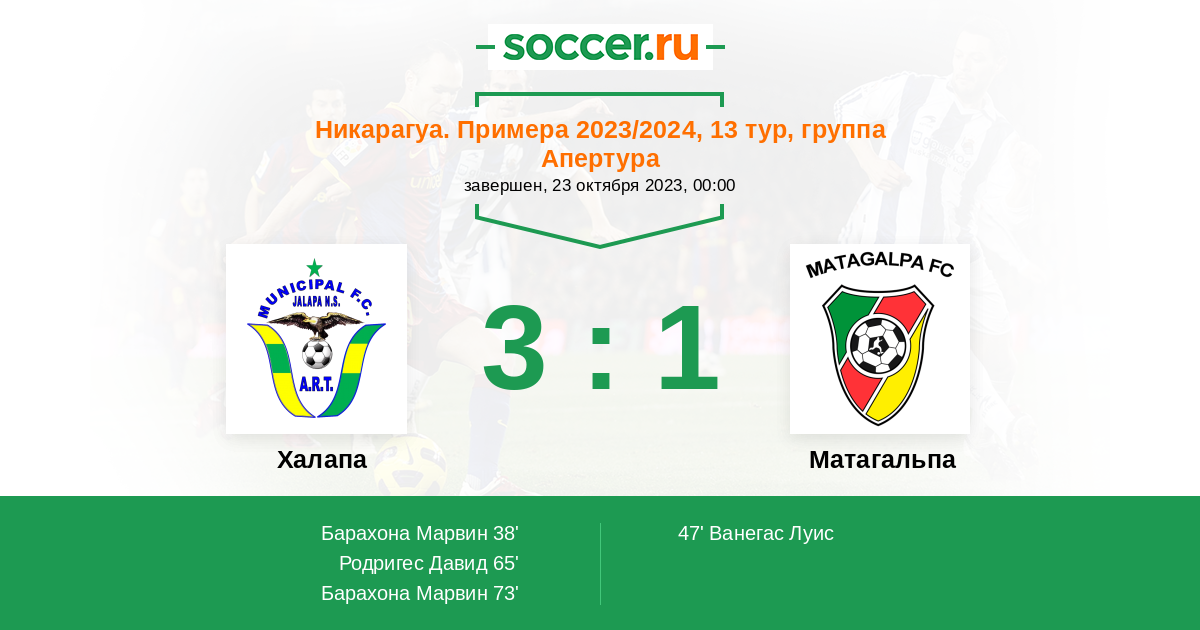 73' (3:1) Барахона Марвин