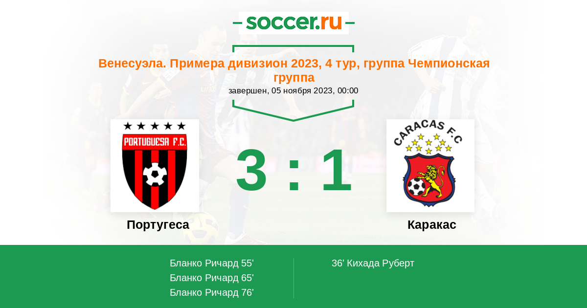 55' (1:1) Бланко Ричард (9) (Рохас Рубен (7))
