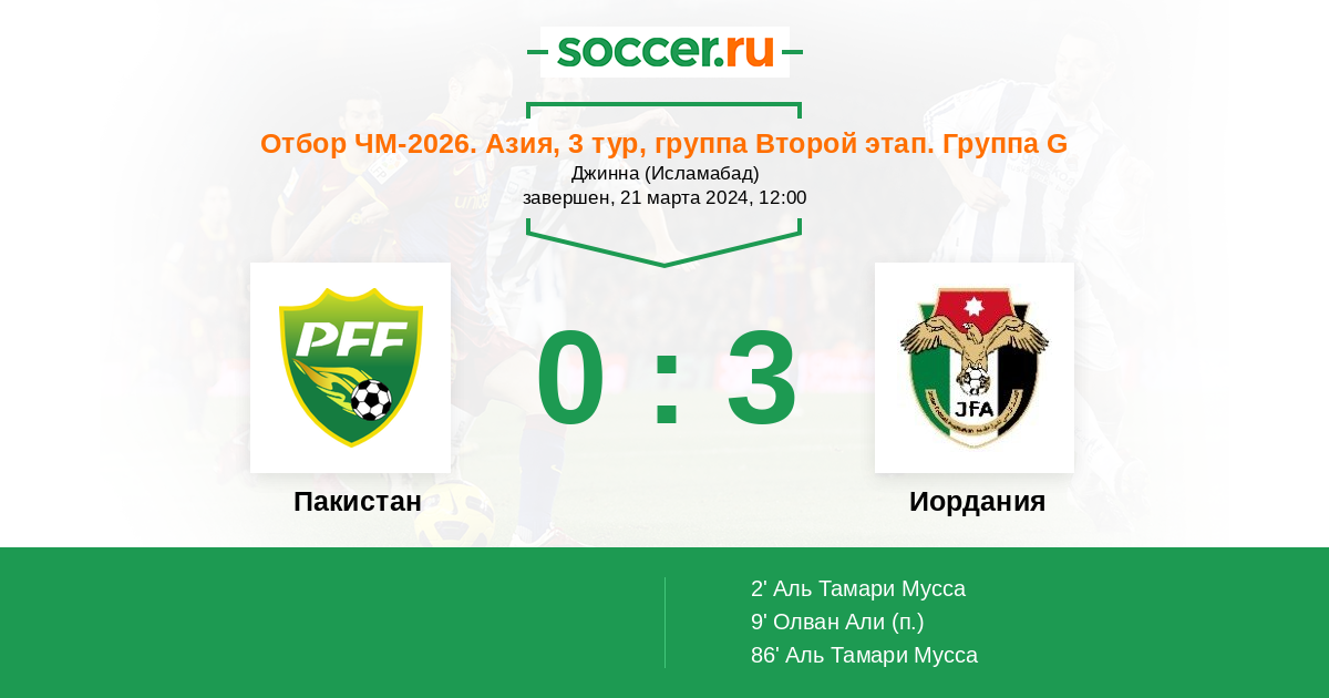 2' (0:1) Аль Тамари Мусса (10) (Аль-Марди Махмуд (13))