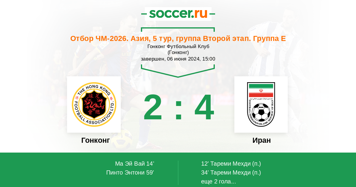 Запасные: 13 Пинто Энтони (с 57'), 3 Гербиг Оливер (с 72'), 12 Нган Чеук-Пан (с 72'), 10 Стефан (с 76'), 20 Удебулузор Майкл (с 76'), 18 Чан Ка Хо, 19 Нг Вай-Хим, 7 Лау Ц-Чун, 2 Ю Ваи Лим, 23 Лам Хин Тинг, 14 Пун Пуй-Хин, 22 Вонг Хо Чун Энсон