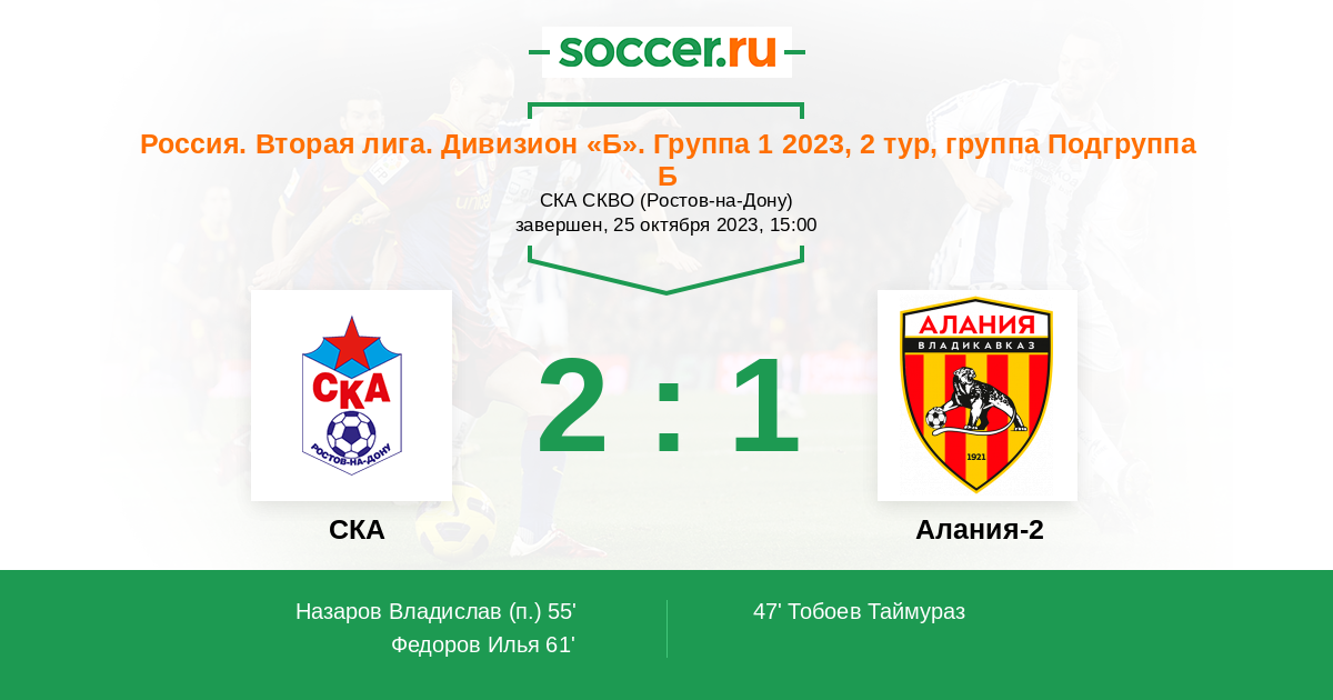 Запасные: Томаев Азамат (с 20'), Тадтаев Арсен (с 63'), Бязров Артур (с 63'), Кокаев Атсамаз (с 80'), Четоев Тимур (с 80')