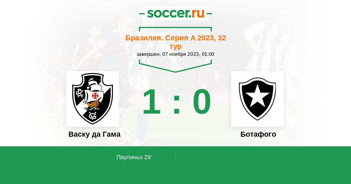 29' (1:0) Паулиньо (96) (Майкон (4))