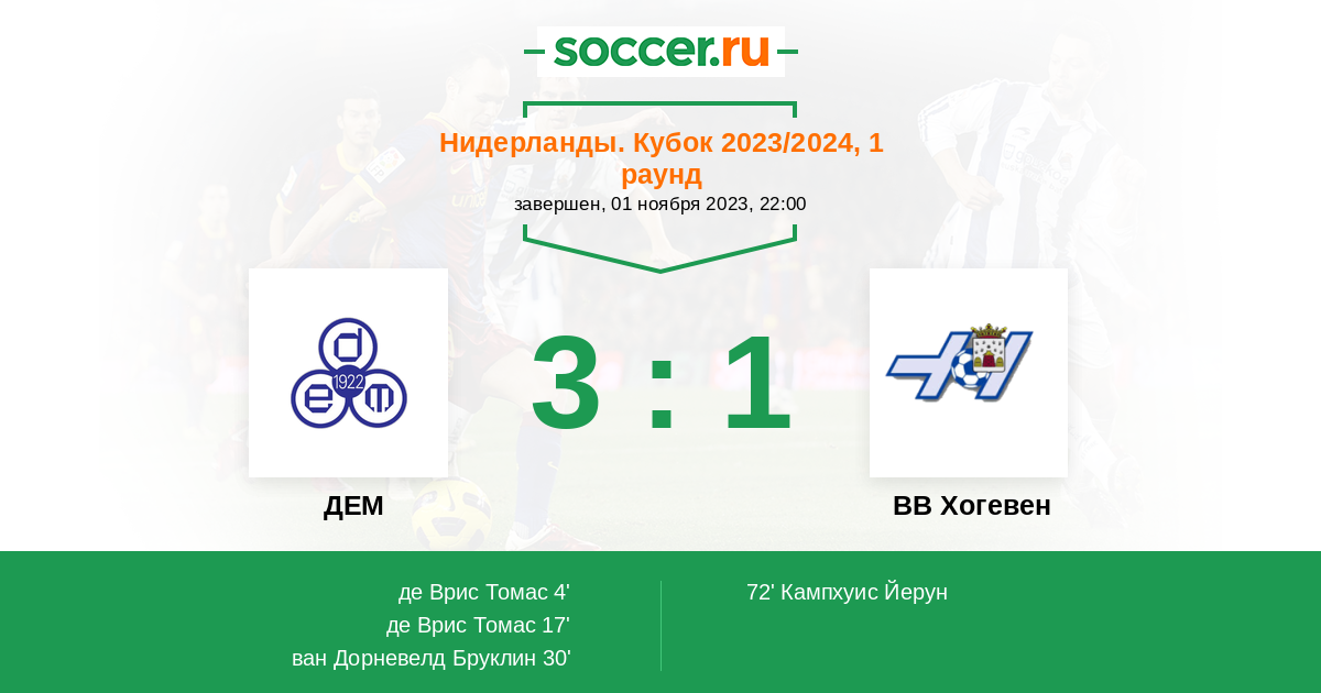 4' (1:0) де Врис Томас (10) (Версвейверен Свен (1))