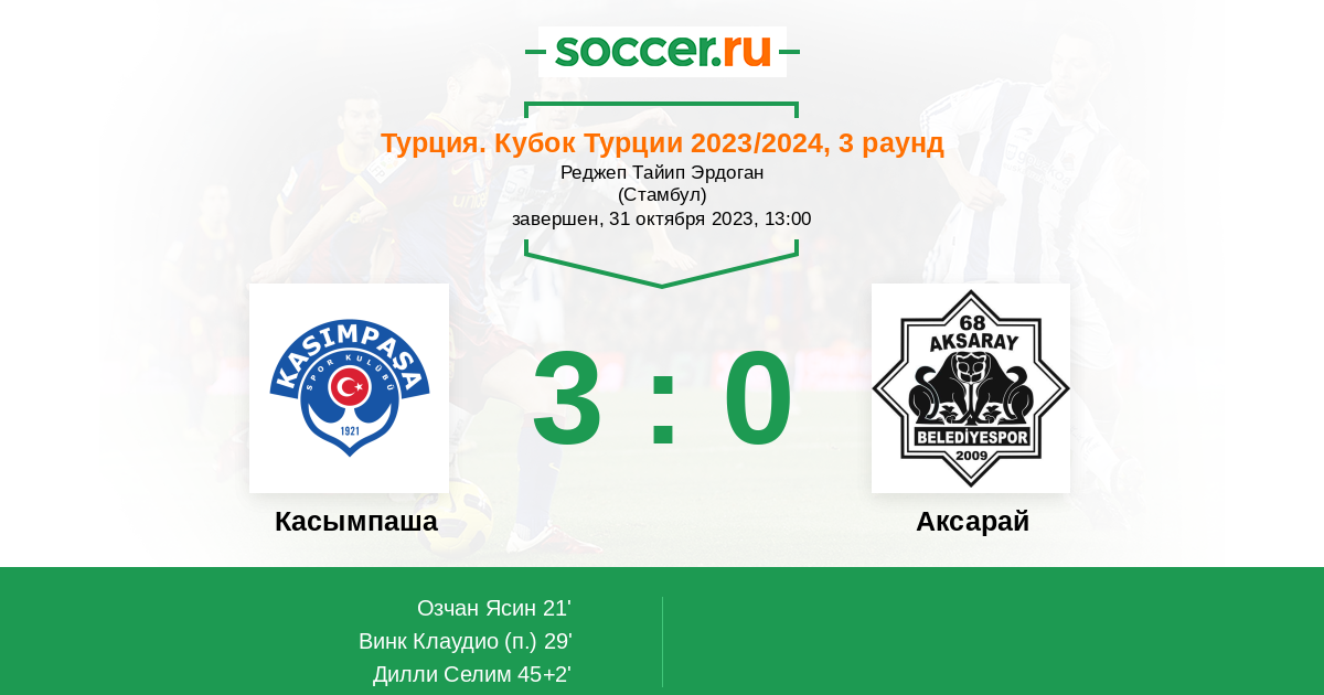 21' (1:0) Озчан Ясин (58)