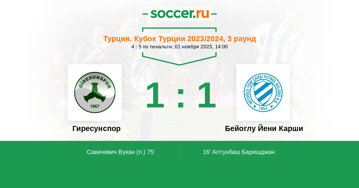 16' (0:1) Алтунбаш Баришджан (22)