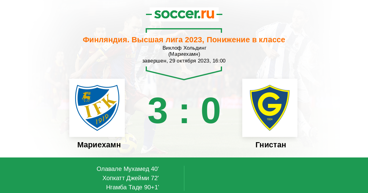 Запасные: 8 Нгамба Таде (с 70'), 6 Саллинен Оскари (с 90+1'), 7 Сьороос Рику (с 90+1'), 9 Кледсон, 13 Кубронн Жан-Кристоф, 81 Хенрикссон Эльмо, 4 Энквист Даниэль