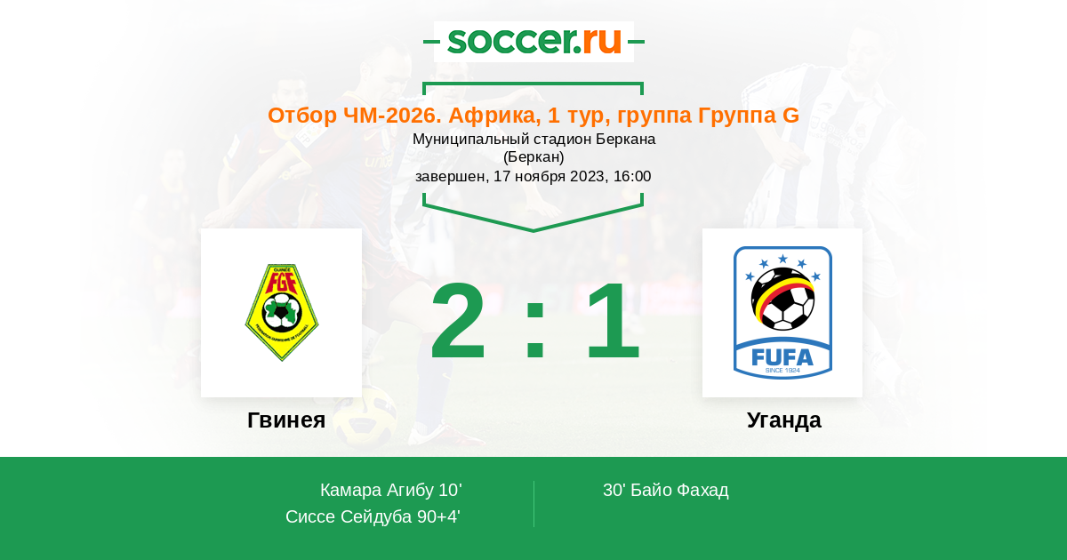 10' (1:0) Камара Агибу (18) (Байо Мохаммед (11))