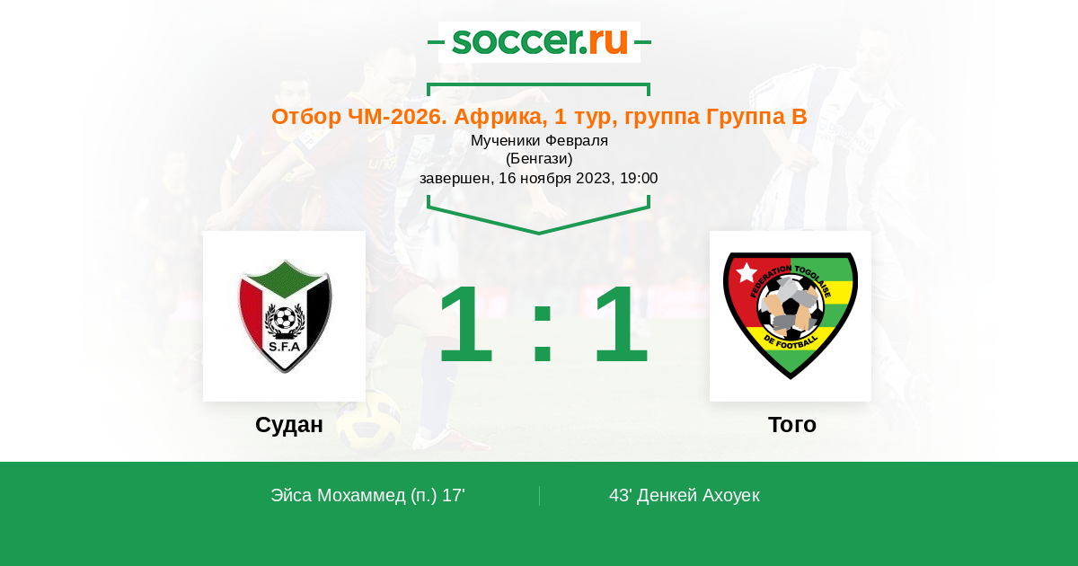 43' (1:1) Денкей Ахоуек (8) (Нарей Халед (11))