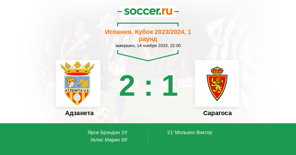 21' (0:1) Мольехо Виктор (20) (Бермехо Серхио (10))