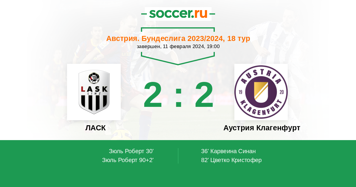 Запасные: 21 Льюбич Иван (с 68'), 11 Коне Мусса (с 68'), 19 Пинтор Ленни (с 83'), 29 Флекер Флориан (с 83'), 37 Копадо Лукас, 28 Зибенхандль Йорг, 18 Йовичич Бранко