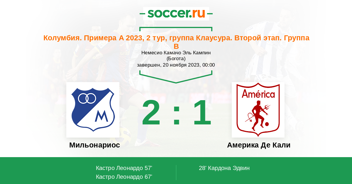 28' (0:1) Кардона Эдвин (88) (Эскобар Хосен (36))