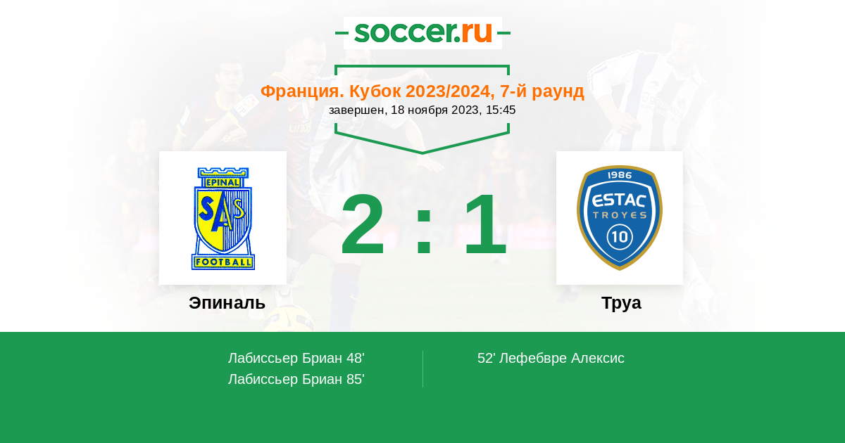 Запасные: Лабиссьер Бриан (с 47'), Вайон Артур (с 80'), Ньянг Абдулайе (с 90'), Хатье Лео, Альжич Муамер, Зогба Маэль, Бородин Николя