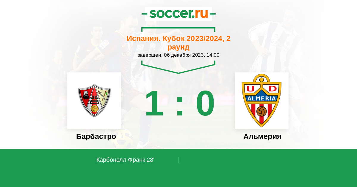 28' (1:0) Карбонелл Франк (4) (Миньотес Эдуардо (21))