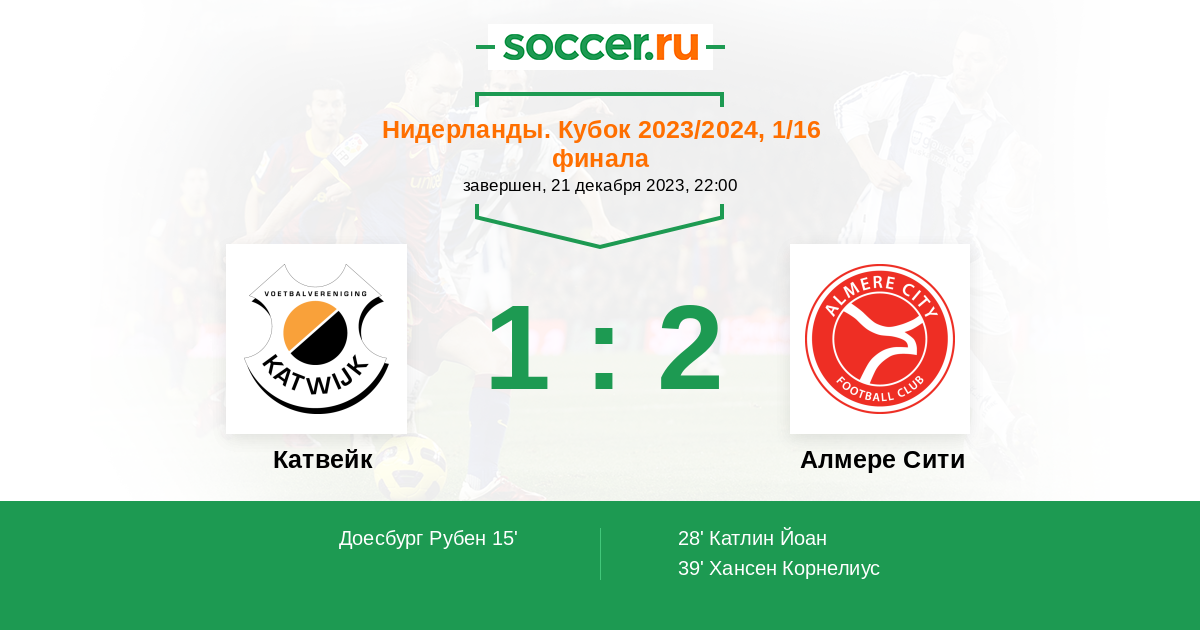 15' (1:0) Доесбург Рубен (7) (Блокланд Kай (18))