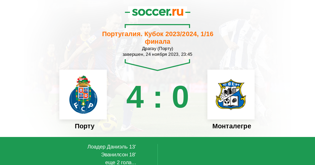 Запасные: 10 Консейсау Франсишку (с 58'), 16 Гонсалес Николас (с 58'), 21 Фран Наварро (с 58'), 70 Боржес Гонсалу (с 64'), 22 Варела Алан (с 77'), 4 Карму Давид, 9 Тареми Мехди, 11 Пепе, 99 Кошта Диогу